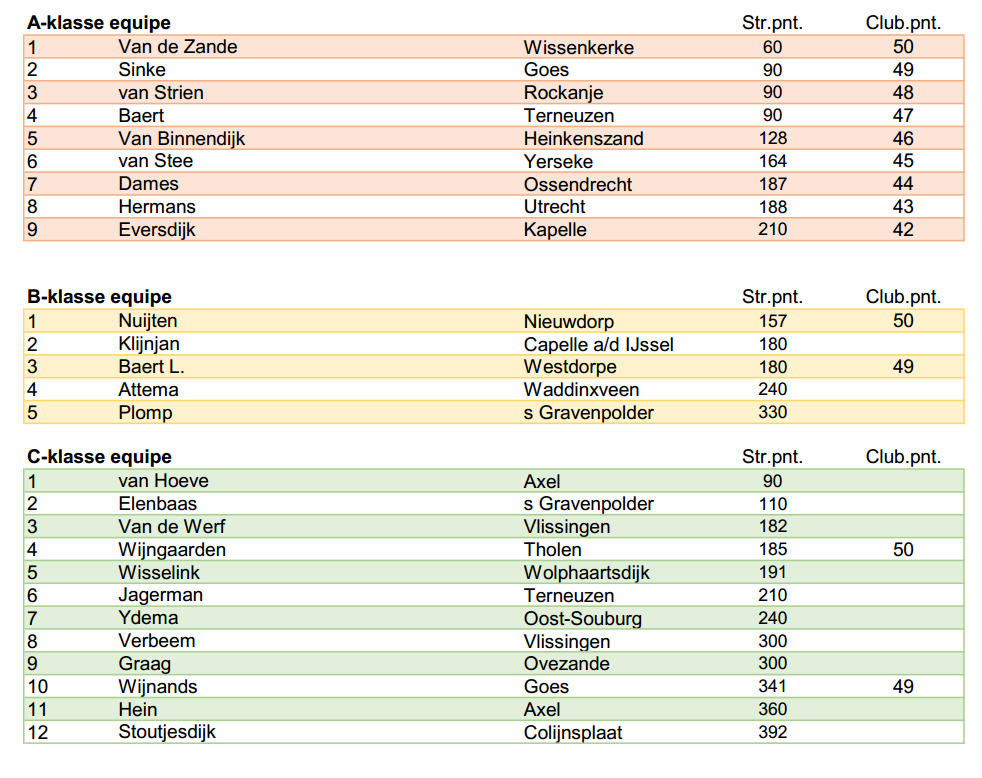 26 deelnemers, waarvan 12 in de C-klasse, 5 in de B-klasse en 9 in de A-